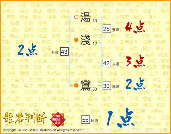 湯淺鸞さんの総運は55画の1点!
