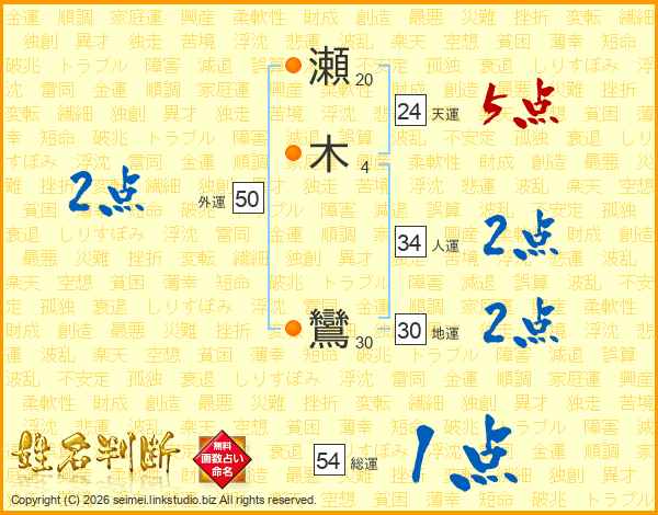 瀬木鸞さんの総運は54画の1点!
