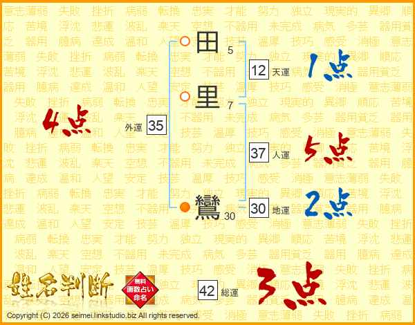 田里鸞さんの総運は42画の3点
