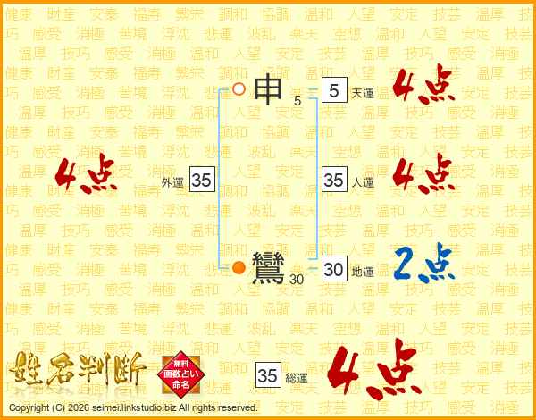 申鸞さんの総運は35画の4点!