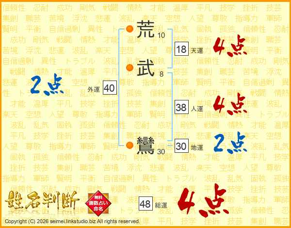 荒武鸞さんの総運は48画の4点!