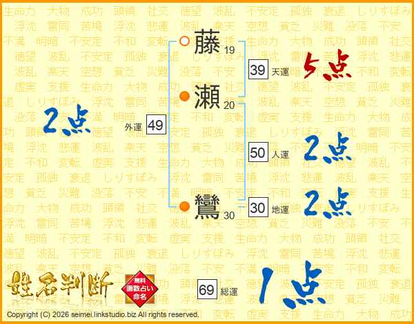 藤瀬鸞さんの総運は69画の1点!