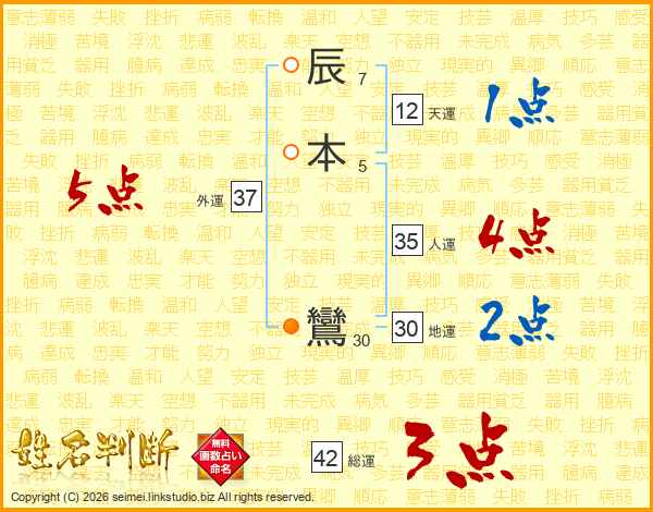 辰本鸞さんの総運は42画の3点!
