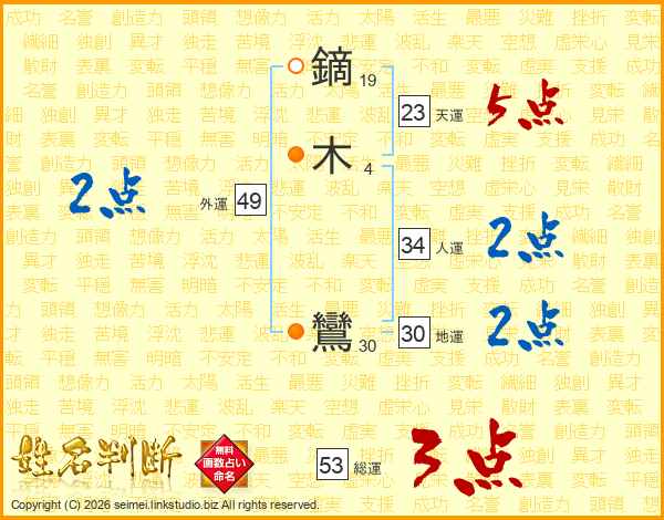 鏑木鸞さんの総運は53画の3点!