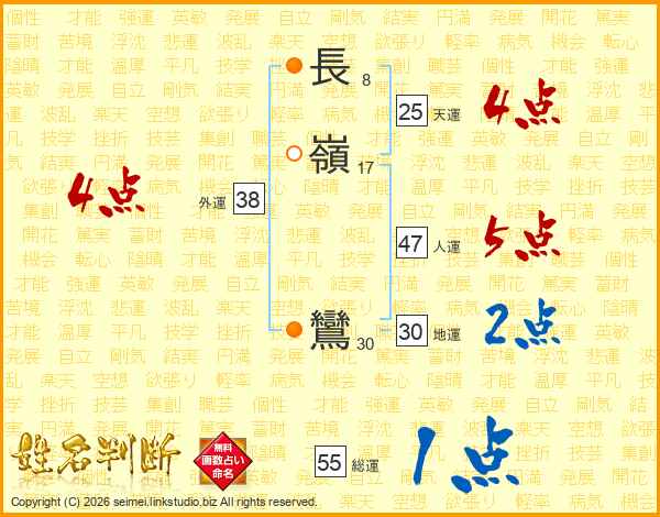 長嶺鸞さんの総運は55画の1点!