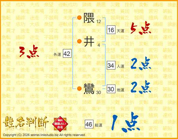 隈井鸞さんの総運は46画の1点!