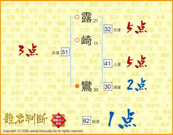 露崎鸞さんの総運は62画の1点