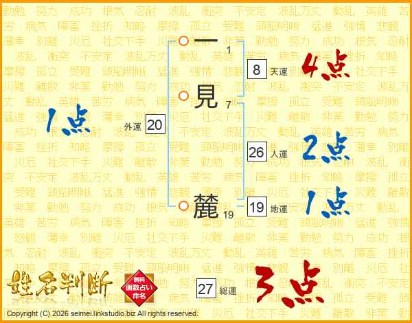 一見麓さんの人運は26画の2点!
