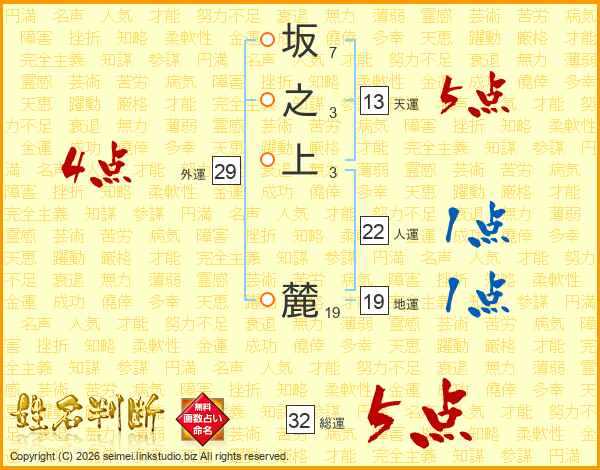 坂之上麓さんの総運は32画の5点!
