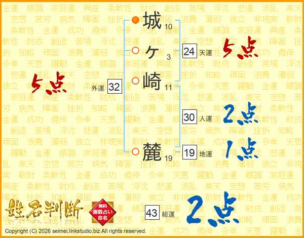 城ヶ崎麓さんの総運は43画の2点!