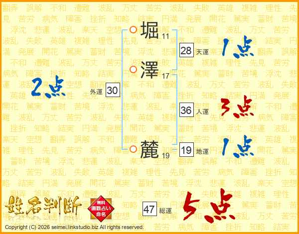 堀澤麓さんの総運は47画の5点!
