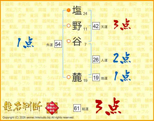 塩(24画)野(11画)谷(7画) 麓(19画)
