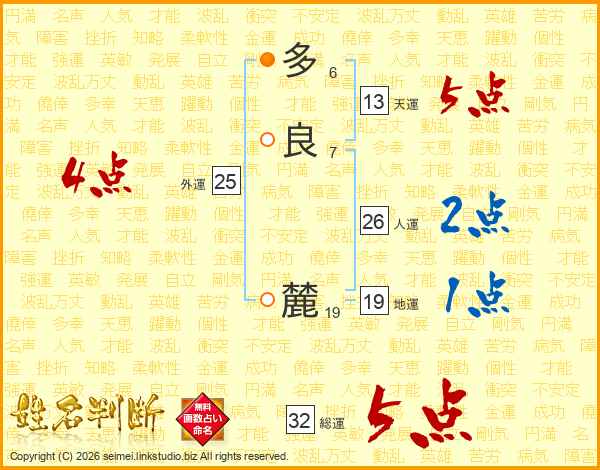 多良麓さんの総運は32画の5点!