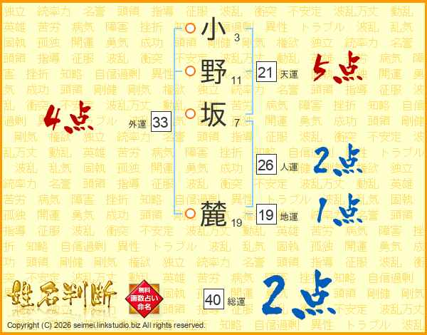 小野坂麓さんの天運は21画の5点!
