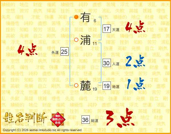有浦麓さんの人運は30画の2点!
