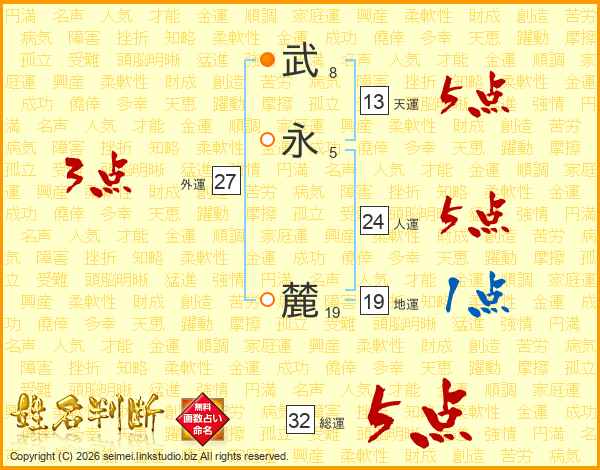 武永麓さんの総運は32画の5点!