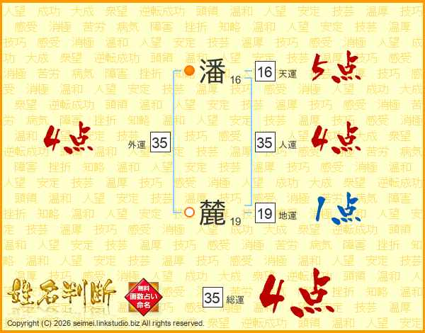 潘麓さんの総運は35画の4点!