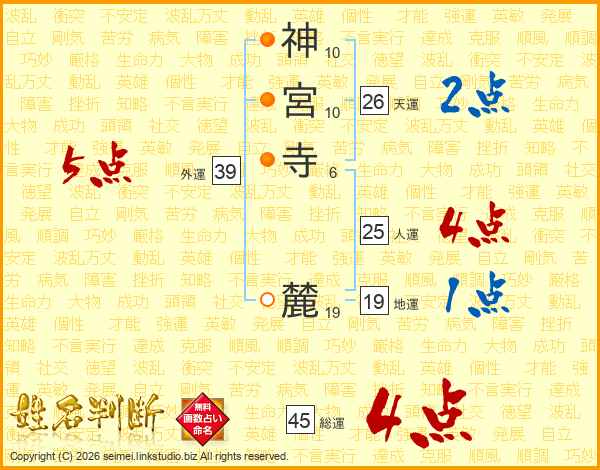 神(10画)宮(10画)寺(6画) 麓(19画)