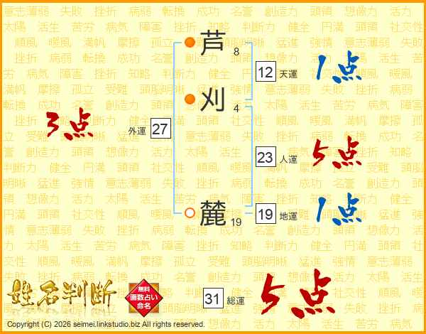 芦刈麓さんの総運は31画の5点!