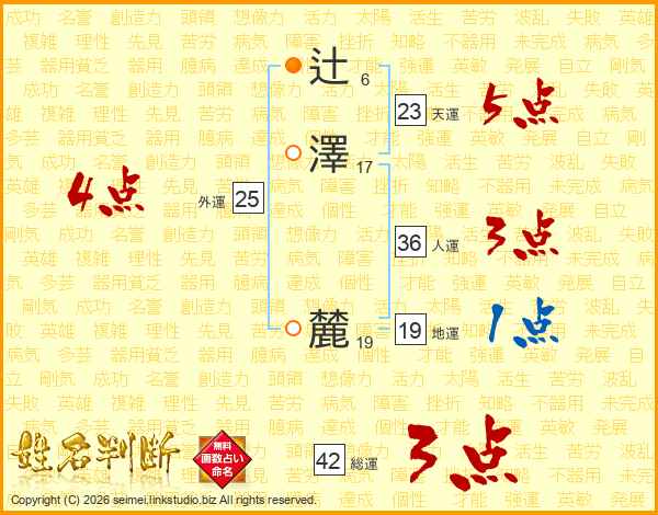 辻澤麓さんの天運は23画の5点!