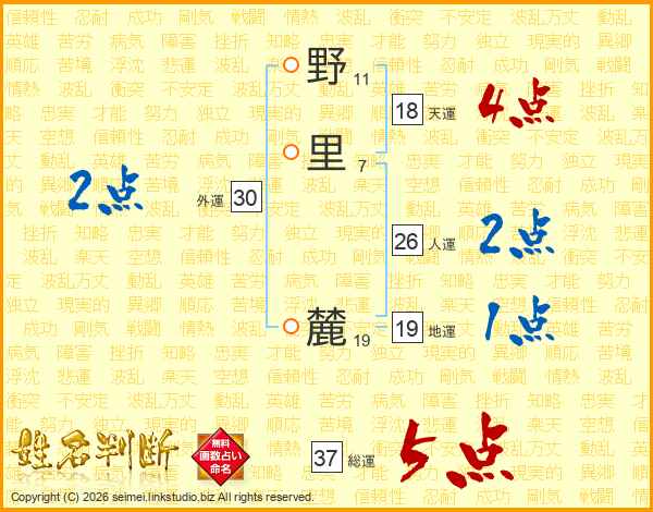 野里麓さんの総運は37画の5点!