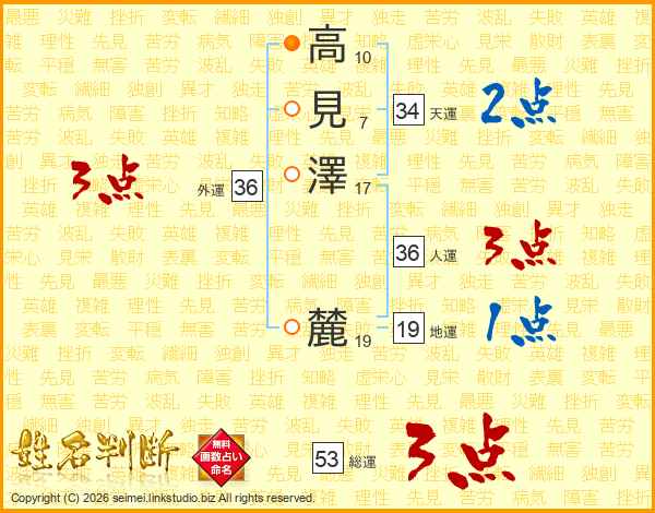 高見澤麓さんの天運は34画の2点!