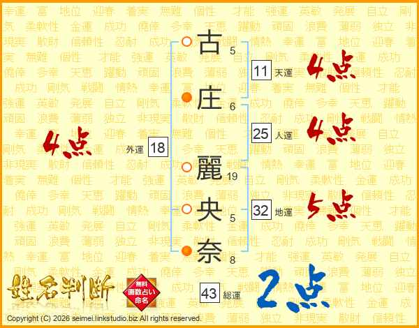 古庄麗央奈さんの天運は11画の4点!