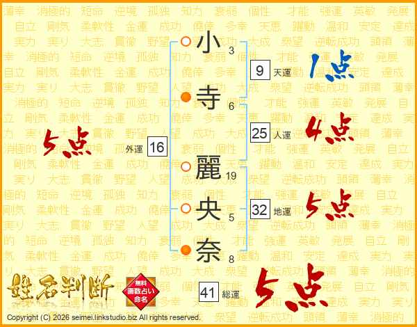 小寺麗央奈さんの総運は41画の5点!
