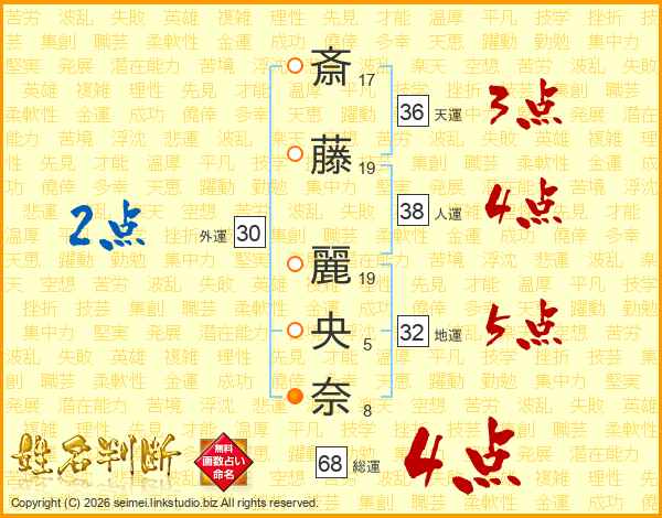 斎藤麗央奈さんの総運は68画の4点!