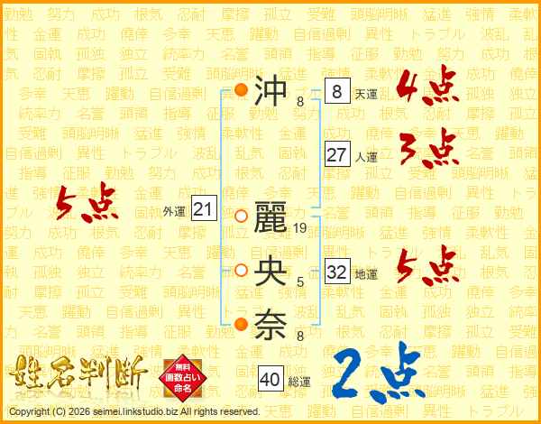 沖麗央奈さんの総運は40画の2点!