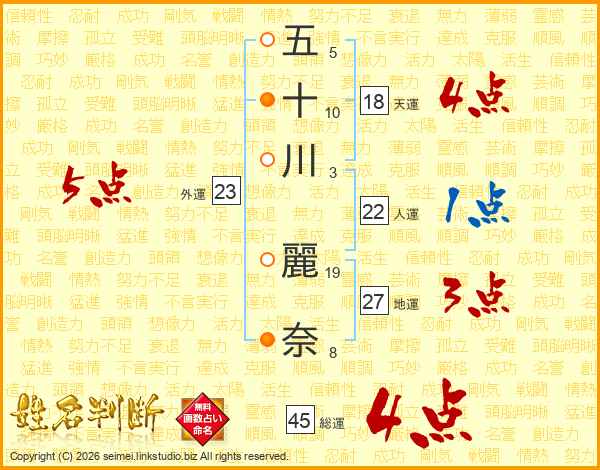 五十川麗奈さんの総運は45画の4点!