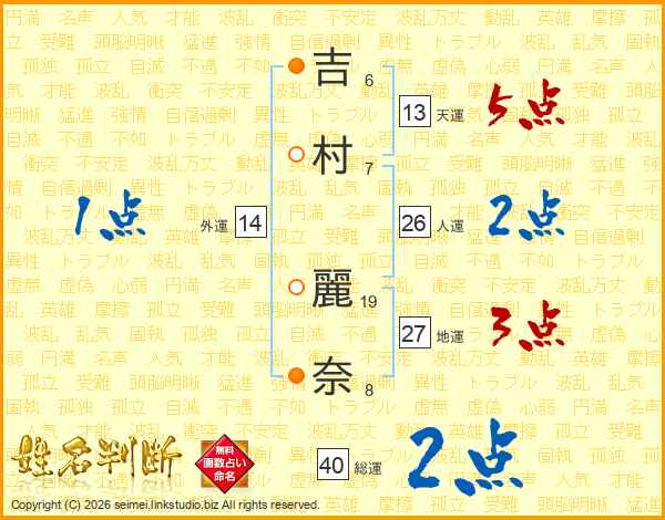 吉村麗奈さんの天運は13画の5点!
