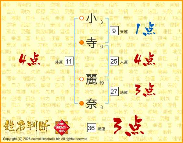 小(3画)寺(6画) 麗(19画)奈(8画)