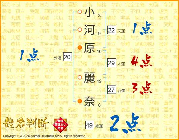小河原麗奈さんの総運は49画の2点!