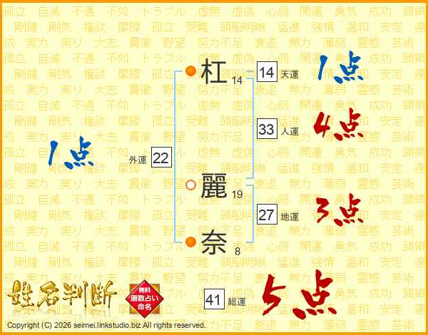 杠麗奈さんの総運は41画の5点!