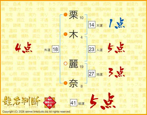 栗木麗奈さんの総運は41画の5点!