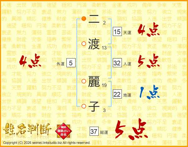 二渡麗子さんの総運は37画の5点!