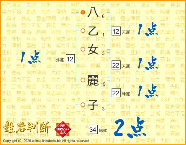 八乙女麗子さんの総運は34画の2点!