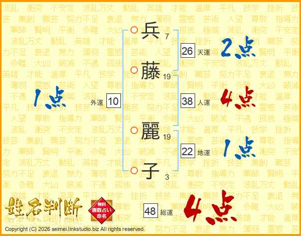 兵(7画)藤(19画) 麗(19画)子(3画)