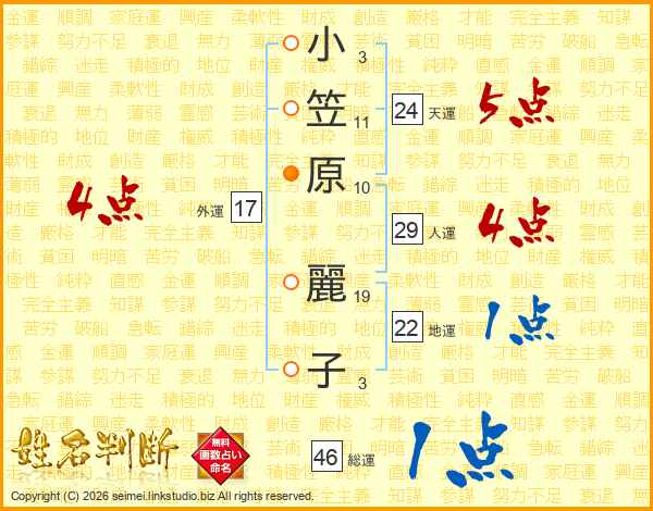 小笠原麗子さんの総運は46画の1点!