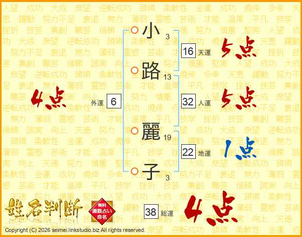 小路麗子さんの総運は38画の4点!