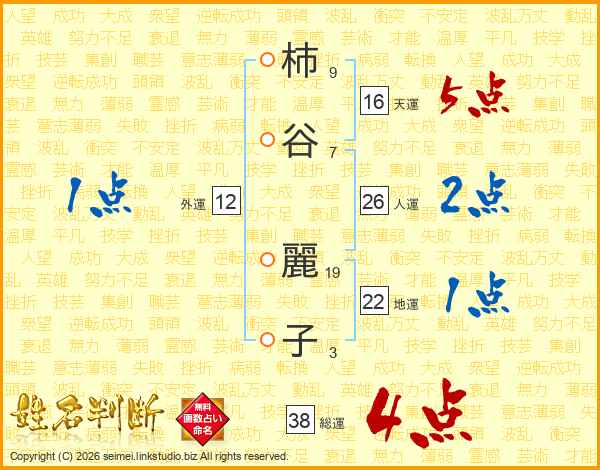 柿谷麗子さんの総運は38画の4点!