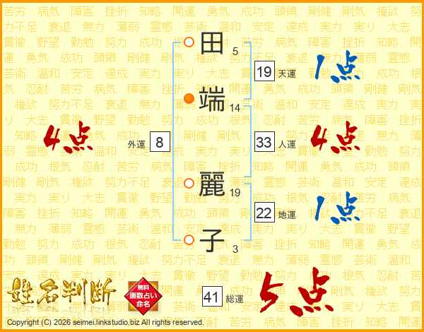 田端麗子さんの総運は41画の5点!