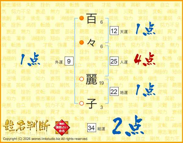 百々麗子さんの人運は25画の4点!
