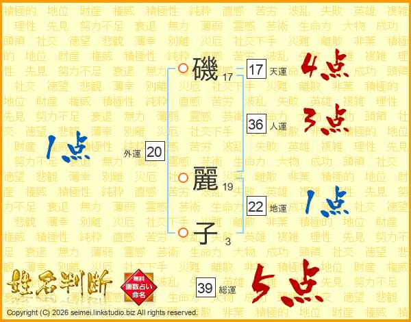 磯麗子さんの総運は39画の5点!