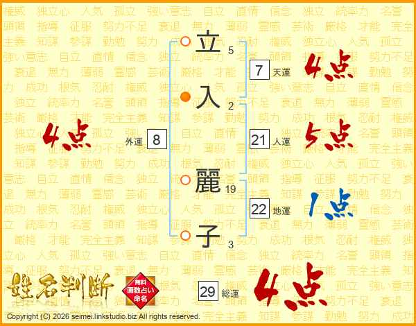 立(5画)入(2画) 麗(19画)子(3画)