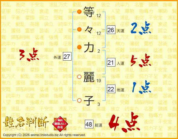 等々力麗子さんの天運は26画の2点!