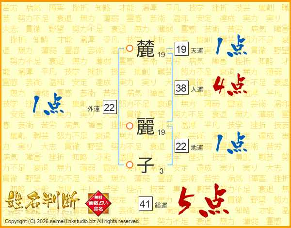 麓(19画) 麗(19画)子(3画)