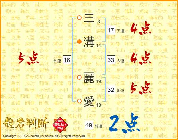 三(3画)溝(14画) 麗(19画)愛(13画)