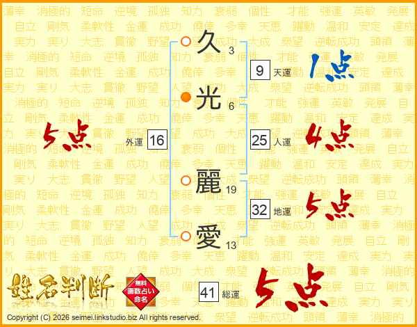 久光麗愛さんの総運は41画の5点!